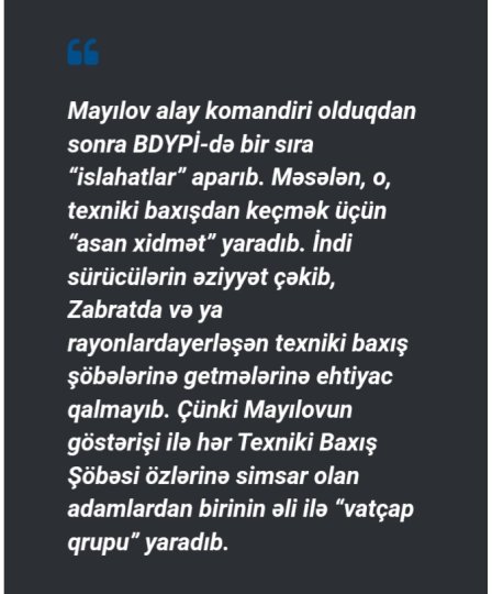Qeyd edək ki, Fuad Mayılovun “ixtiraları” bununla da bitmir. Bu barədə növbəti yazımızda ətraflı bəhs edəcəyik. Bəhs olunacaq mövzular isə alkotester, narkotik vasitənin qəbul edilib, edilməməsi, bu testlər nəticəsində adı kitaba düşənlərlə protokol tərtib edilənlər arasında ciddi fərqin olması, qohumların vəzifələrə təyinat alması və digər mətləblərdən ibarətdir.