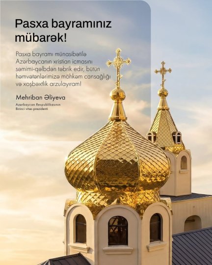 Respublica.Az xəbər verir ki, Mehriban Əliyeva Azərbaycanın xristian icmasını bayram münasibətilə təbrik edib.